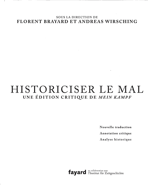 Florent Brayard, Andreas Wirsching (dir.), Historiciser le mal: une édition critique de Mein Kampf, Fayard, 2021